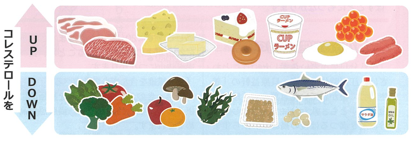 肉類や乳製品、卵の黄身、イクラ、タラコなどの魚卵からの脂肪摂取を減らす。